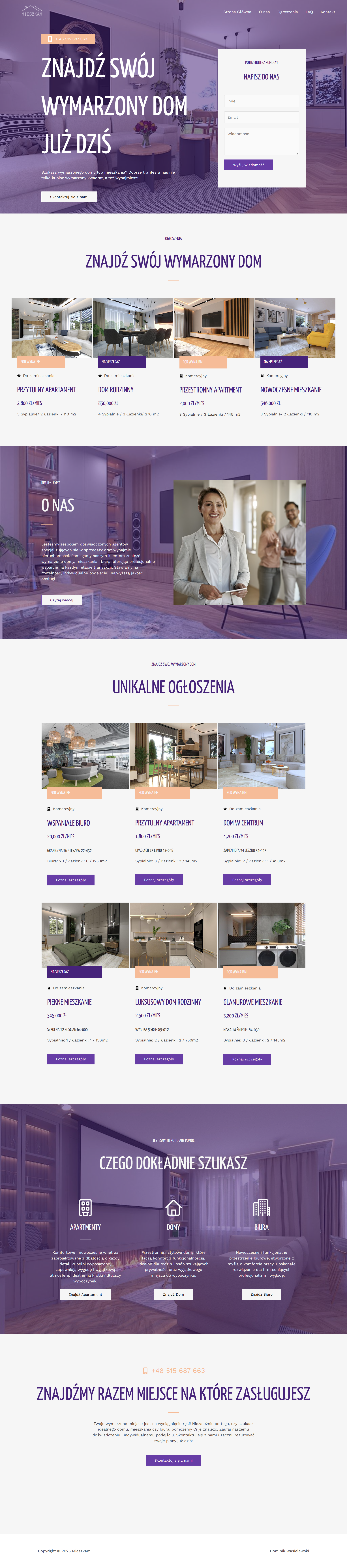 Intuicyjna strona agencji nieruchomości, która ułatwia wyszukiwanie i filtrowanie ofert mieszkań, jednocześnie gwarantując płynny kontakt z ekspertami.