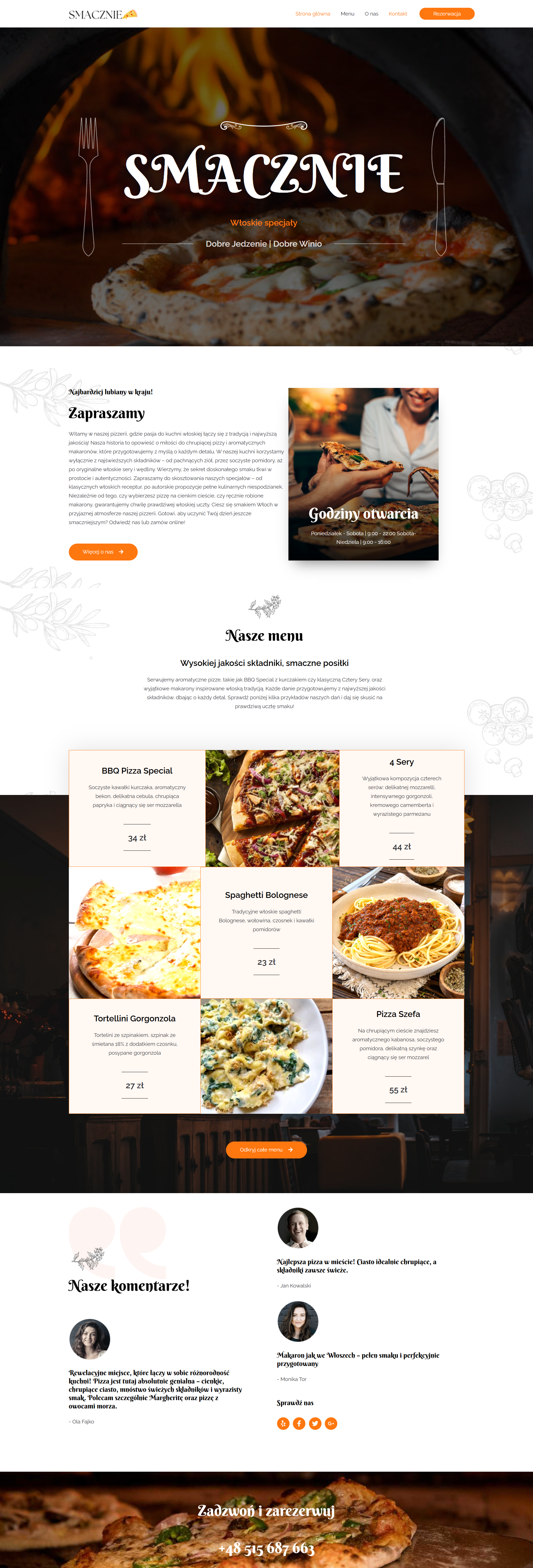 Strona internetowa pełna włoskiej pasji, gdzie znajdziesz klasyczne pizze, aromatyczne makarony oraz możliwość szybkiego zamówienia jedzenia na miejscu lub na wynos.